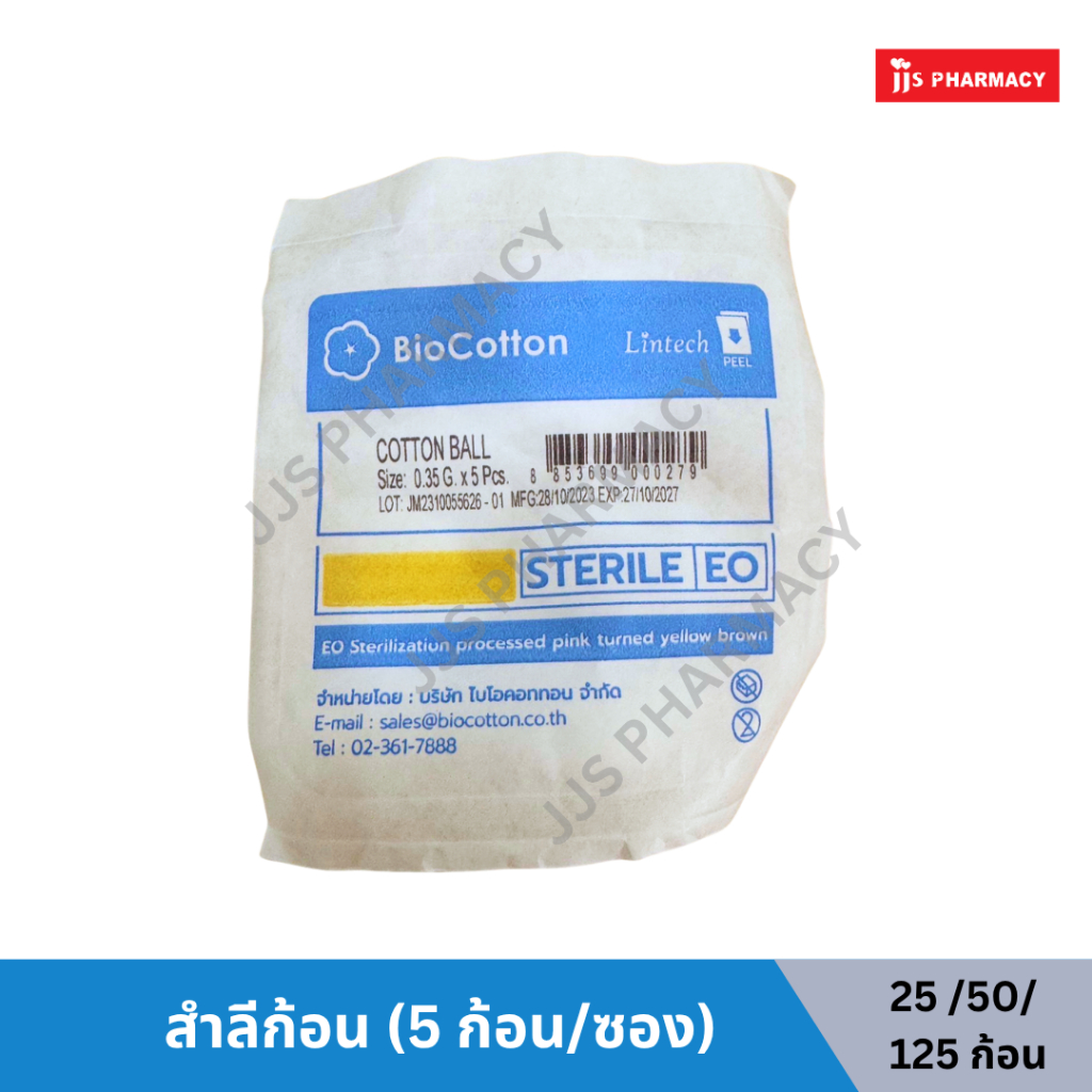 BioCotton Lintech Cotton Ball สำลีก้อน 5 ก้อน/ซอง (หมดอายุ 27/10/27)