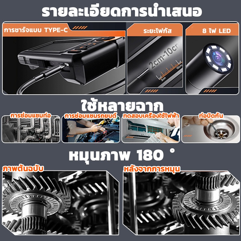 COOLMATEl กล้องเอนโดสโคป Borescope อุตสาหกรรม 4.3 HD1080P IP67 กันน้ํา 8 ไฟ LED สําหรับท่อซ่อมรถยนต์เลนส์เดียว 5M