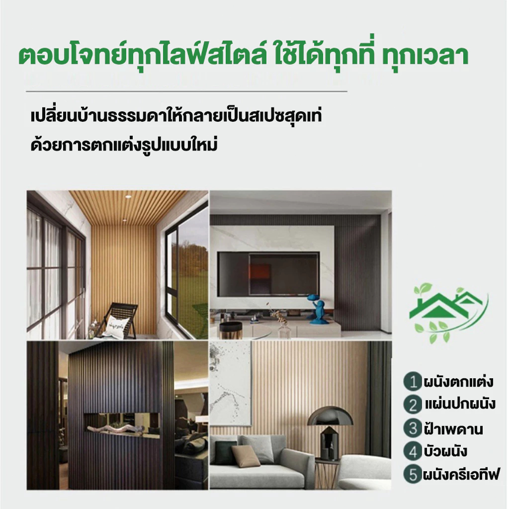 ไม้ระแนง WPC ไม้ระแนงเทียม ไม้ระแนงตกแต่งผนัง 5/10/20 ชิ้น/แพ็ค กันน้ำกันความชื้น กันแมลง
