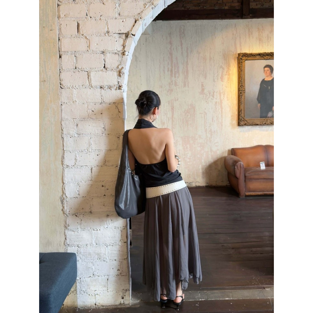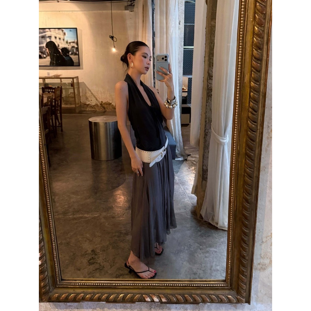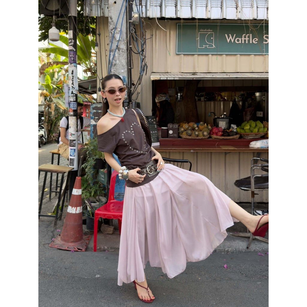 ส่งด่วน 🛵 #26Q083 (SM) กระโปรงผ้าซีฟอง ผ้าพริ้วดีไซส์เก๋ มีซับใน ซิปข้าง เพิ่มความละมุน mmfish