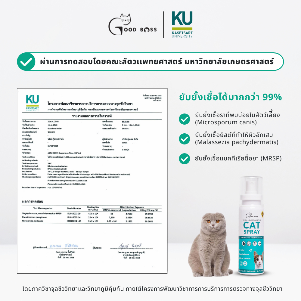 Goodboss SET ดูแลผิวแมว พ่นทั่วตัว Cat Spray + Roller Cat | ลดเชื้อรา ลดคัน ลดขนร่วง สูตรธรรมชาติ