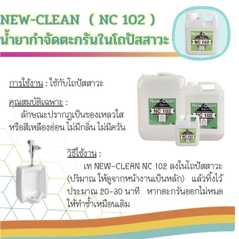 New-Clean NC 102 น้ำยากำจัดตะกรัน สนิม และหินปูนในโถปัสสาวะขนาด 1 ลิตร