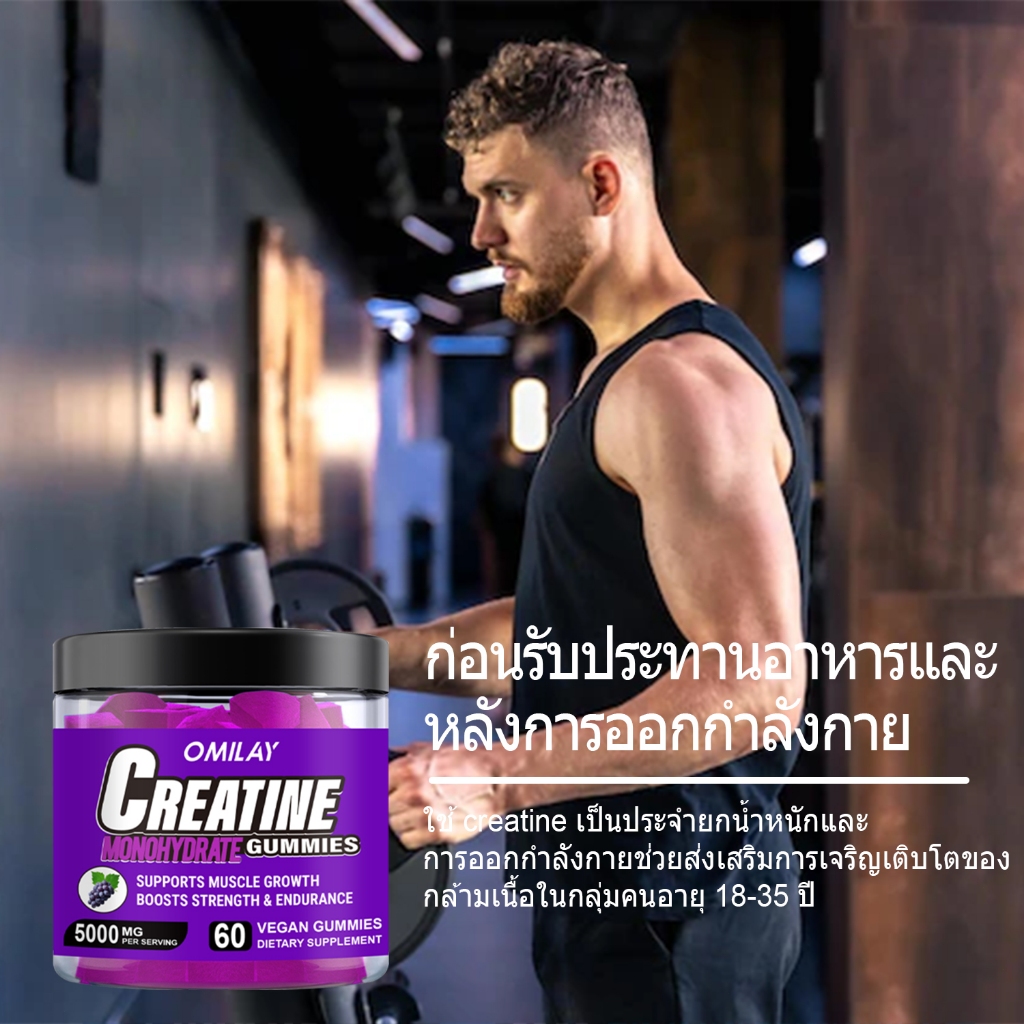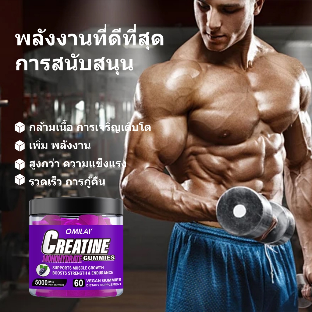 Omilay Creatine Monohydrate ครีเอทีน เพิ่มพลังงาน Gummy Creatine ครีเอทีน Grape 60 Gummies