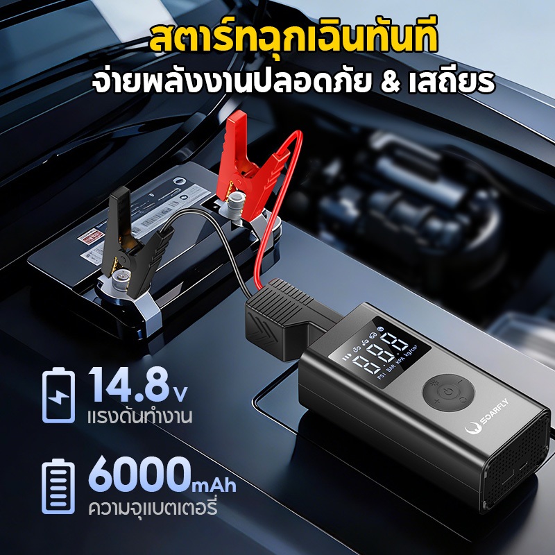 SOARFLY Car Jump Starter ที่พ่วงแบตรถยนต์แบบพกพา จั๊มแบตรถยนต์ จั๊มสตาร์ทรถ12v จัมสตาร์ รถยนต์ จั๊มสตาร์ท รถยนต์ เครื่องจั้มแบต