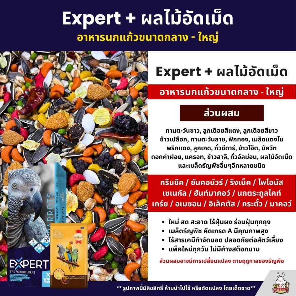 (5KG/10KG) Expert Parrot 000 + ผลไม้อัดเม็ด อาหารนกแก้ว เกรดพรีเมี่ยม
