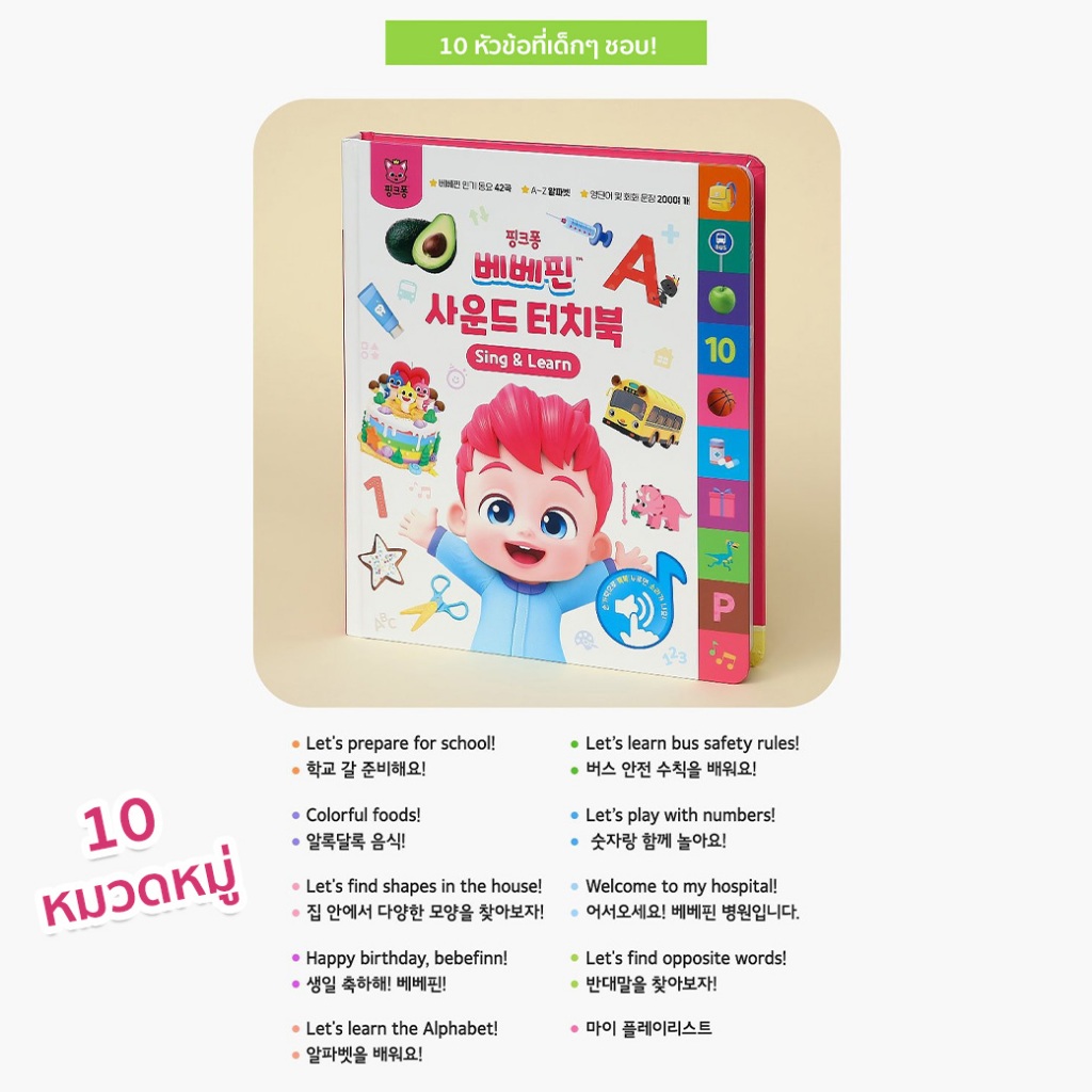 Pinkfong - หนังสือเสียง Bebefinn Sound Touch Book คำศัพท์ 200 คำ 2 ภาษา (อังกฤษ เกาหลี) เลือกฟังแค่ภาษาอังกฤษได้