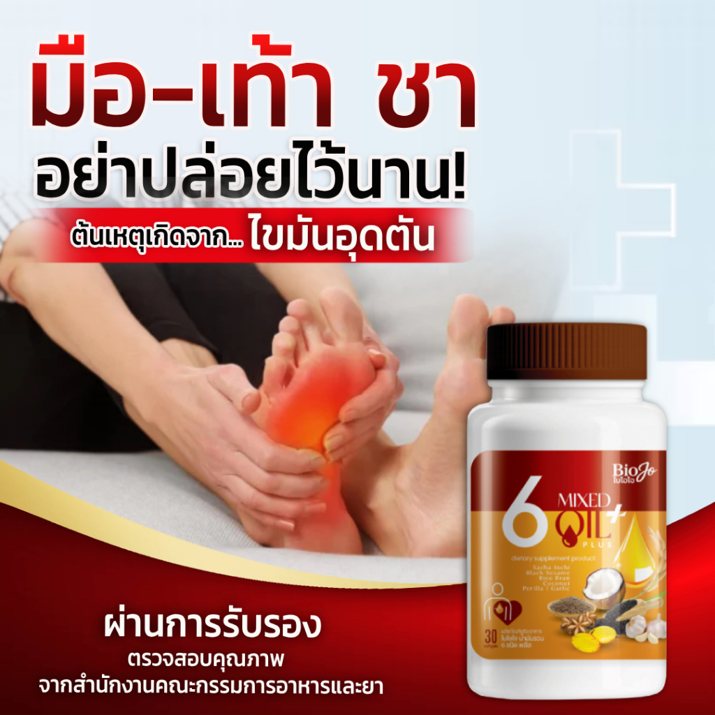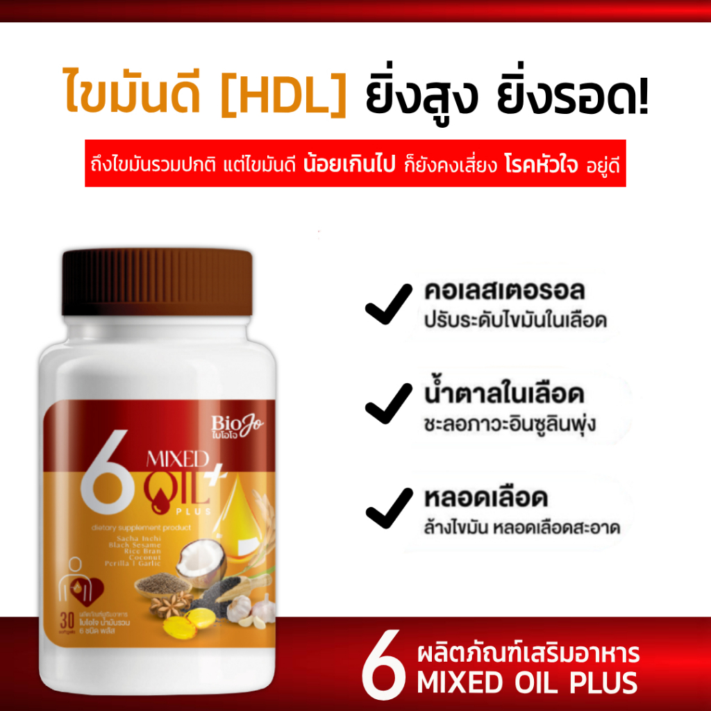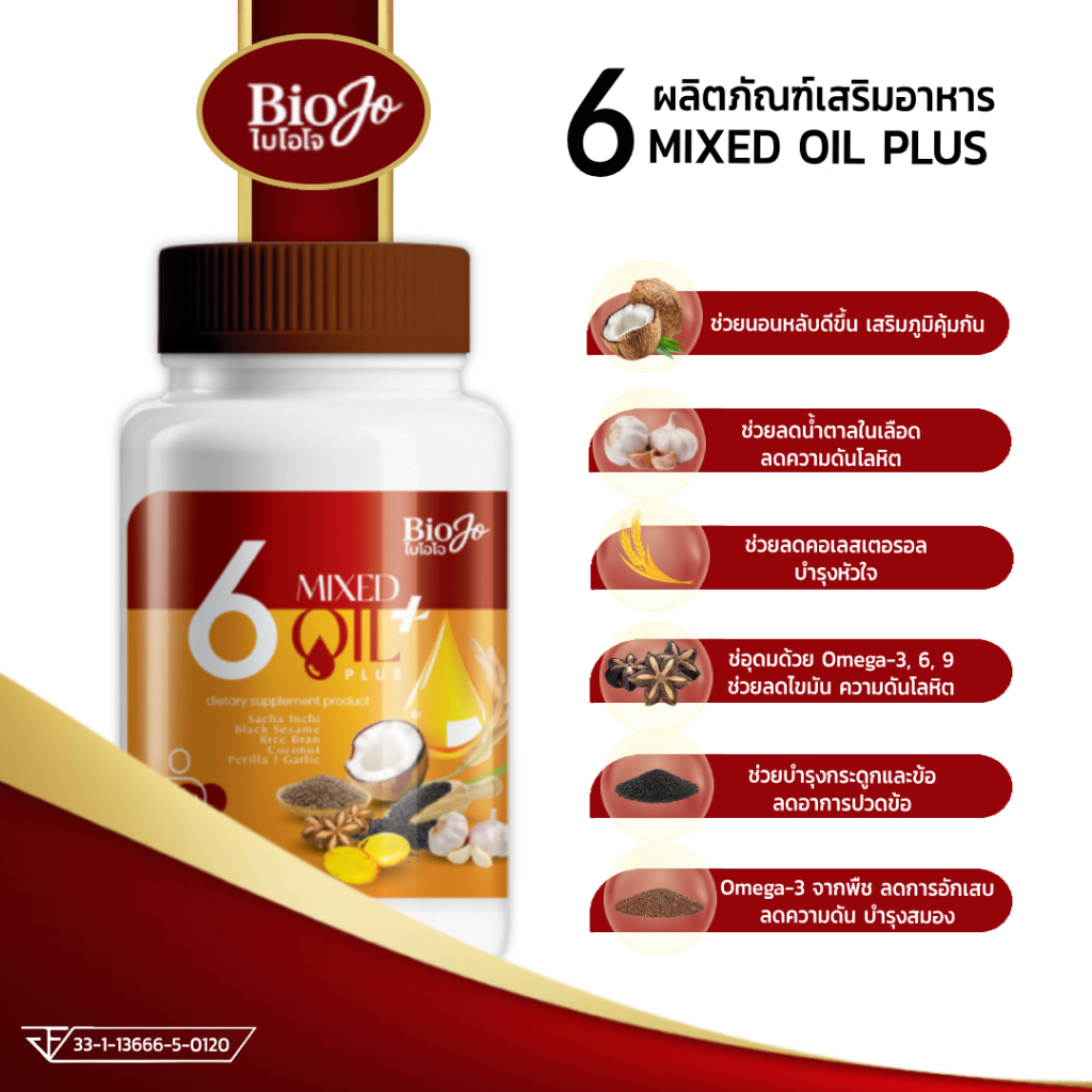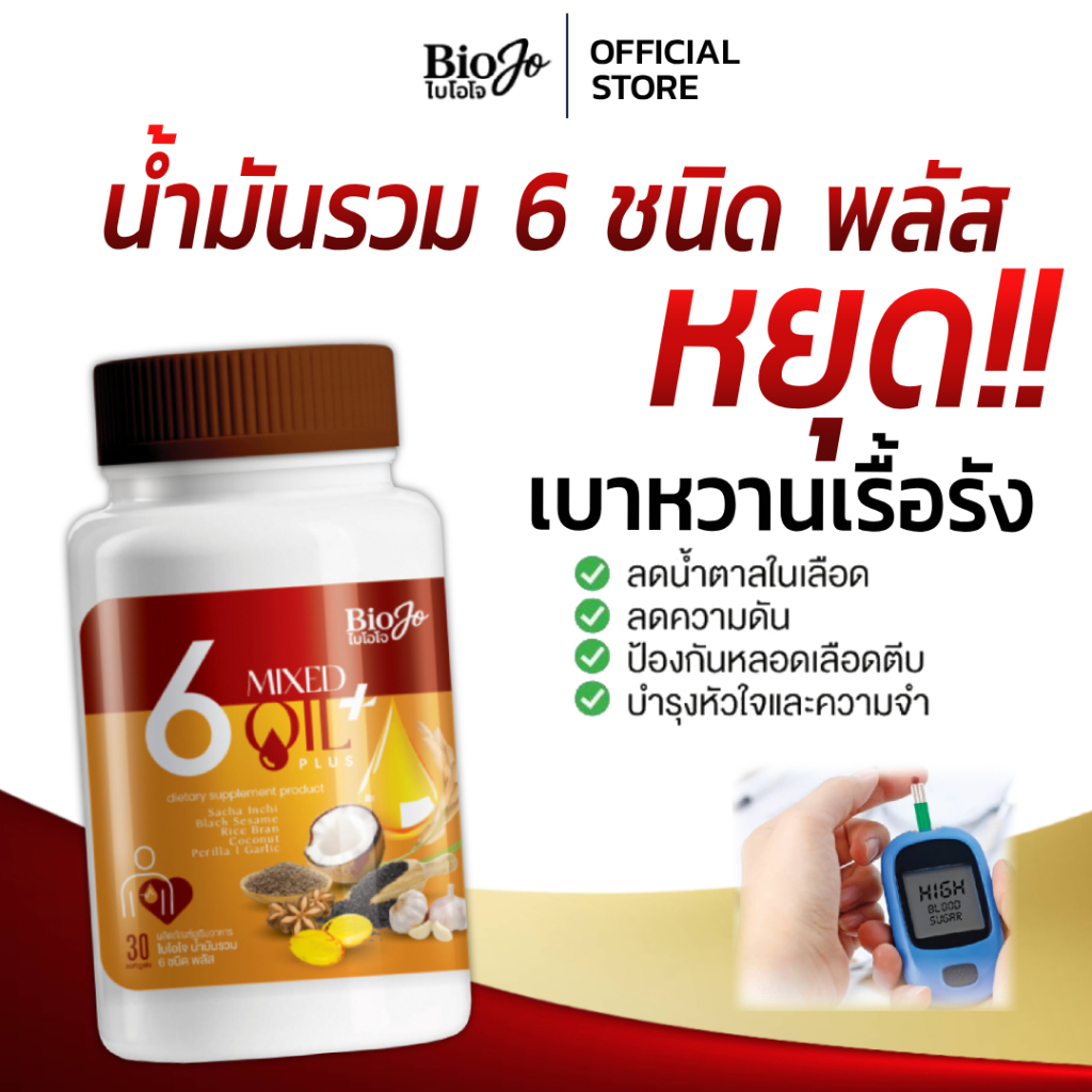 BIOJO น้ำมันรวม 6 ชนิด [ 3 แถม 3 ] ปรับลดค่าน้ำตาลในเลือด ไขมัน ความดัน เบาหวาน