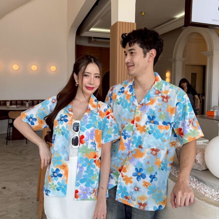 ❤ พร้อมส่งจ้า ❤ เสื้อฮาวายผู้ใหญ่ เสื้อสงกรานต์ เสื้อคู่รัก ผ้าไหม เนื้อนุ่ม ใส่สบาย (ขายเป็นตัวนะคะ คนโสดก้อใส่ได้จ้า)
