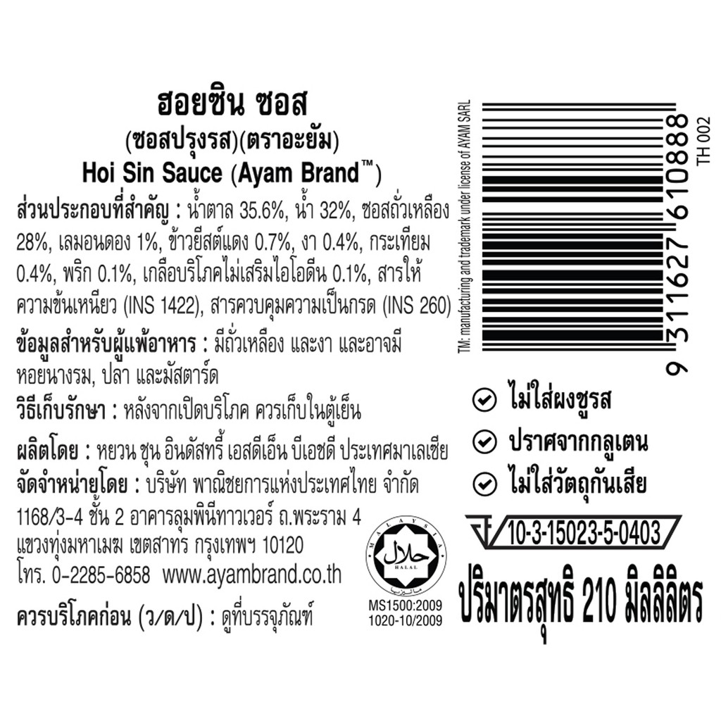 อะยัม ซอสฮอยซิน (Hoi Sin) 210 มิลลิลิตร
