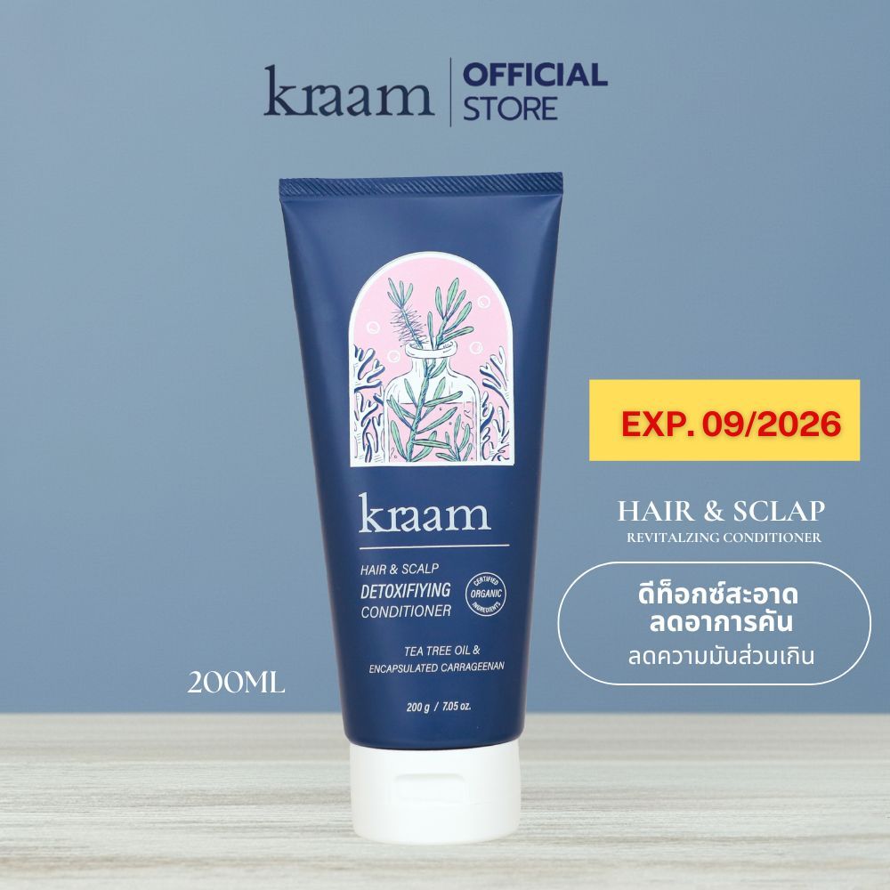 [ EXP 09/26 ] Kraam Hair&Scalp Detoxifying Conditioner (Tea Tree Oil & Encapsulated Carrageenan)200 ML สินค้าเคลียแลนด์