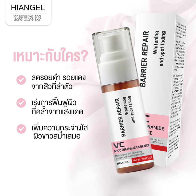 ซ่อมแซมเกราะป้องกันผิว ปรับสีผิวให้สว่างกระจ่างใส ลดเลือนจุดด่างดำ ด้วยสารสกัดจากวิตามินซีและไนอะซินาไมด์HIANGEL