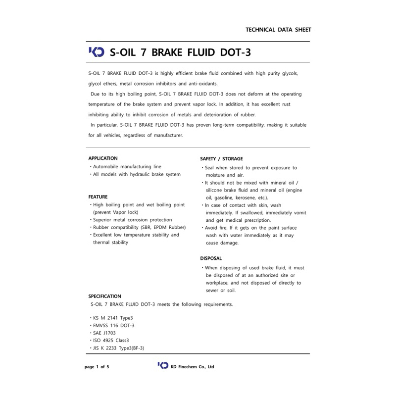 น้ำมันเบรคเกรดสังเคราะห์ S-OIL BRAKE FLUID DOT 3