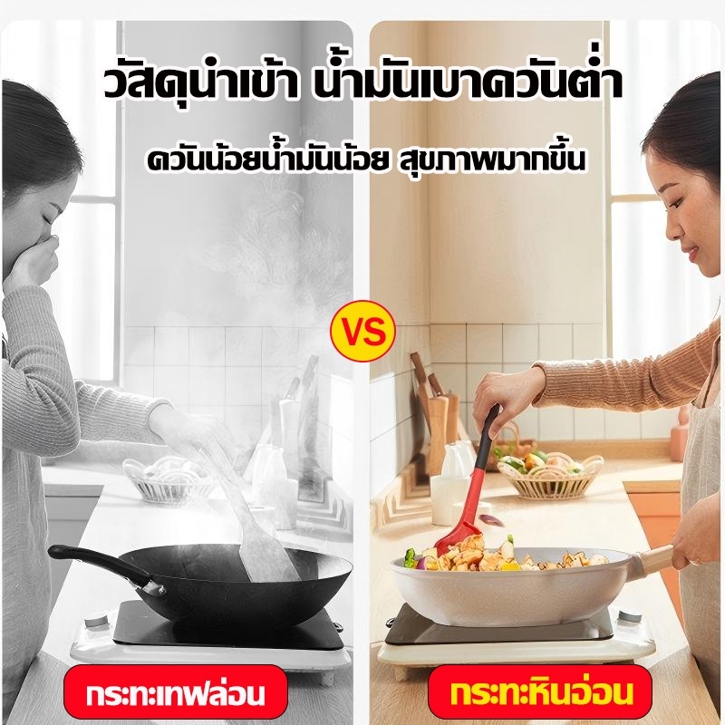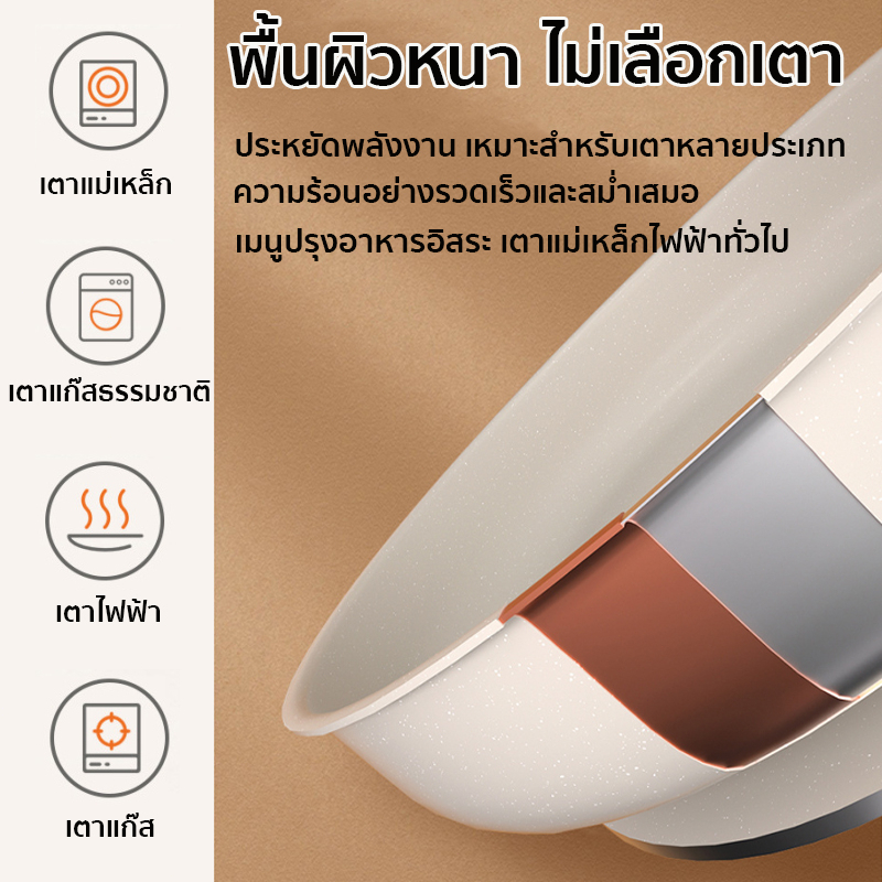 Terra Craft มีฝาปิด ขนาด 22-28cm กระทะเคลือบหินอ่อน ไม่ติดกระทะ ทำความสะอาดง่าย ใช้ได้กับเตาแม่เหล็กไฟฟ้าและเตาแก๊ส
