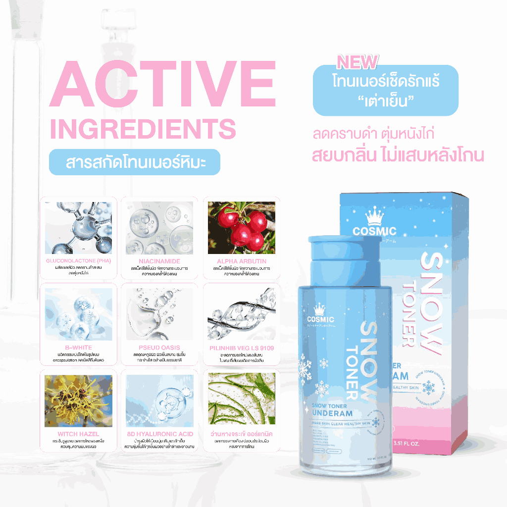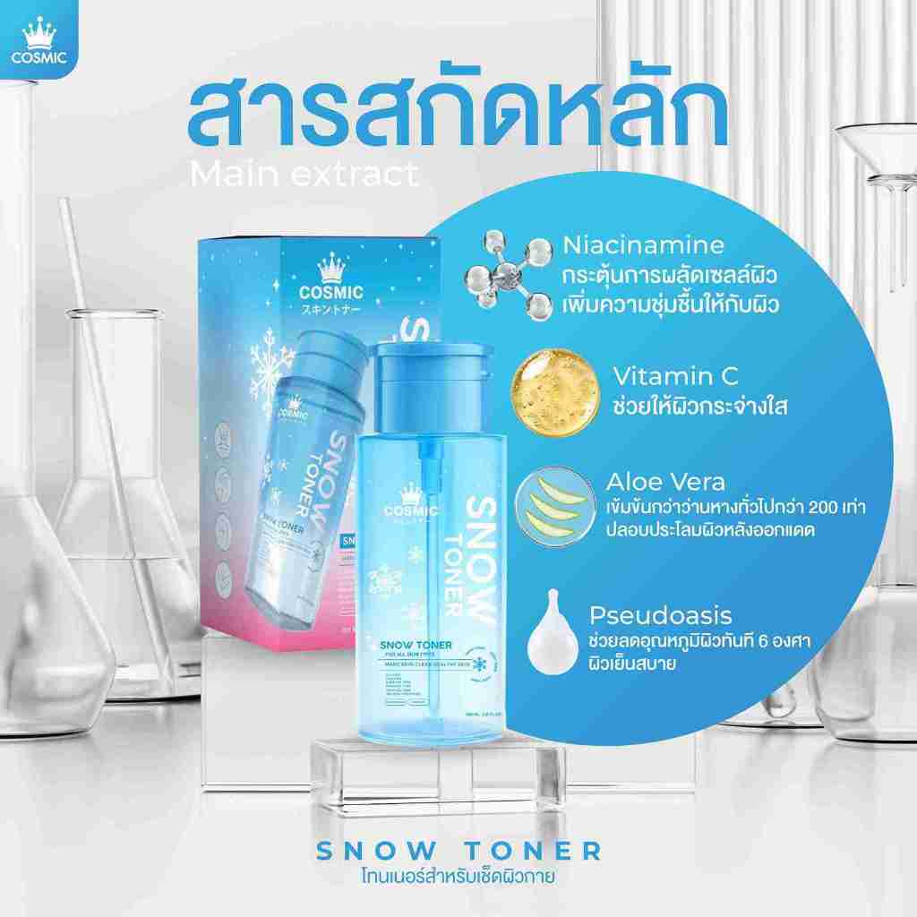 โทนเนอร์หิมะ COSMIC Snow Toner โทนเนอร์ผิวกาย ผิวใส ลดความหมองคล้ำ ผลัดเซลล์ผิว ลดขน สูตรเย็นสบายผิว (เจ้าของแบรนด์)