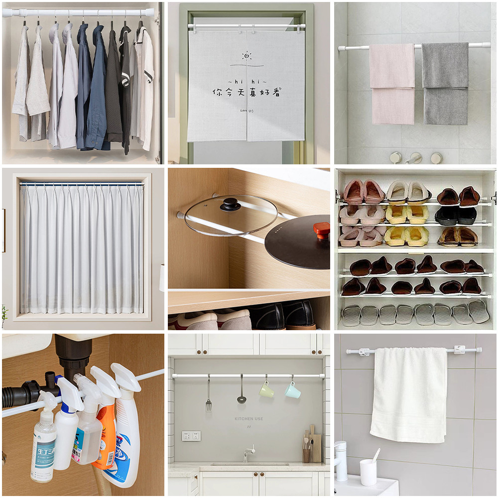 ราวผ้าม่าน ราวแขวนผ้า ราวแขวนไม่เจาะ ราวแขวนห้องน้ำ ปรับขนาดได้ ราวม่านห้องน้ำ ราวตากผ้าติดผนัง ราวตากผ้ายืดหด