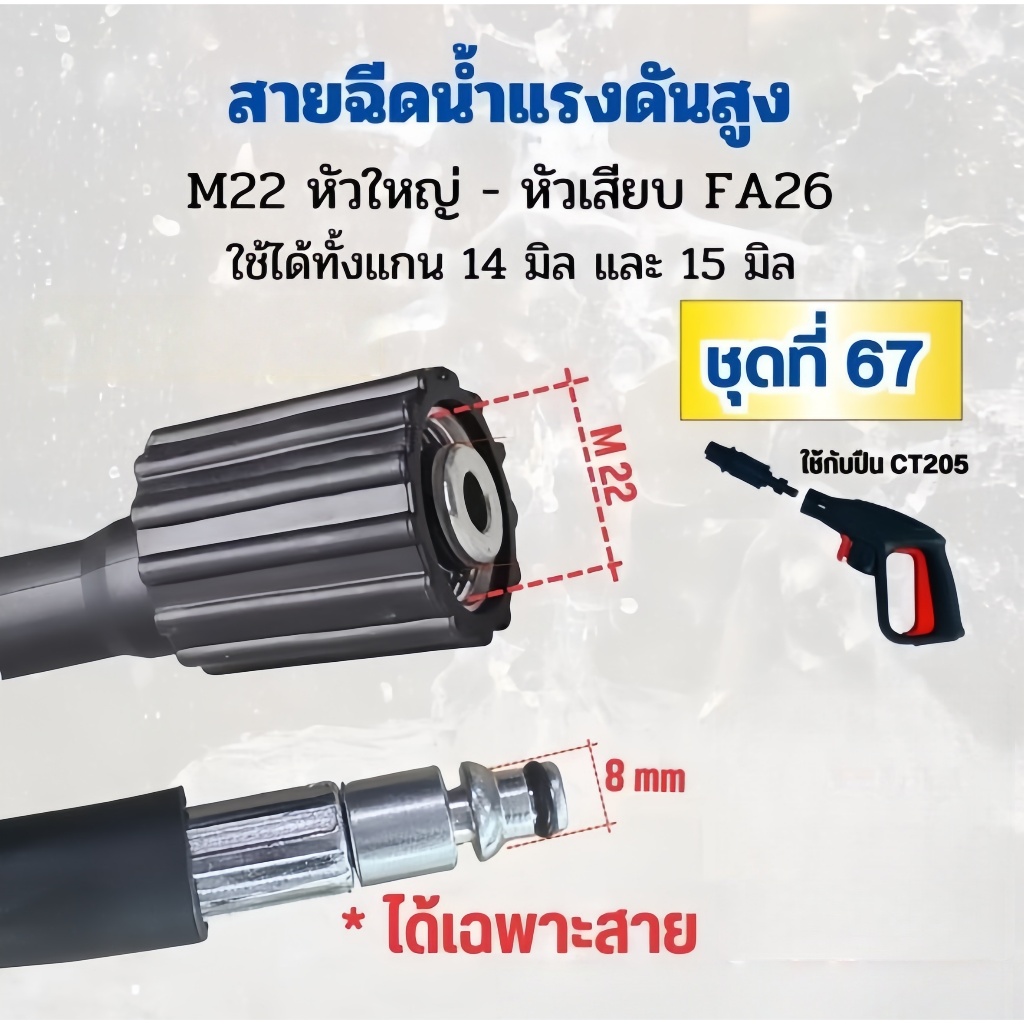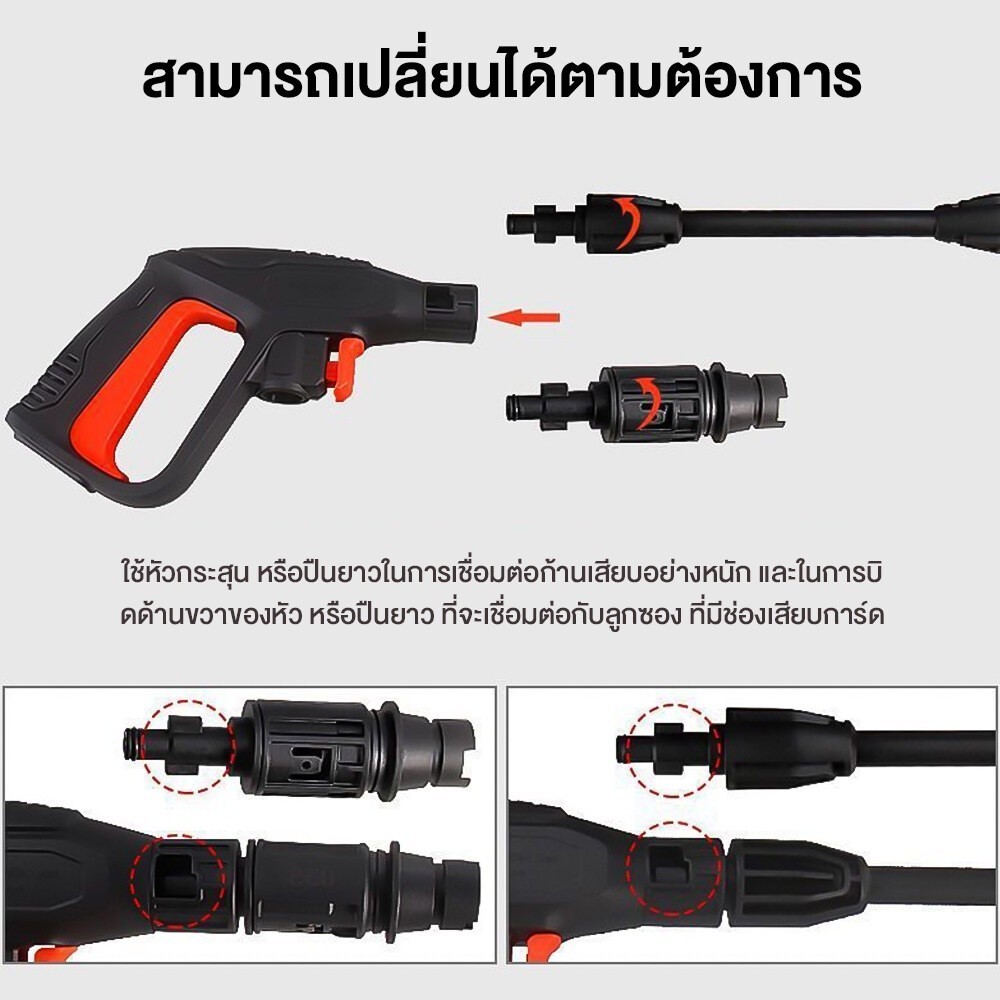 TH-Living ปืนฉีดน้ำแรงดันสูง ฉีดน้ำแรงสูง หัวฉีดน้ำแรงดันสูงอะไหล่ ปืนฉีดน้ำแรงดันสูง พร้อมหัวฉีดปรับแรงดันน้ำ 3 ระดับ