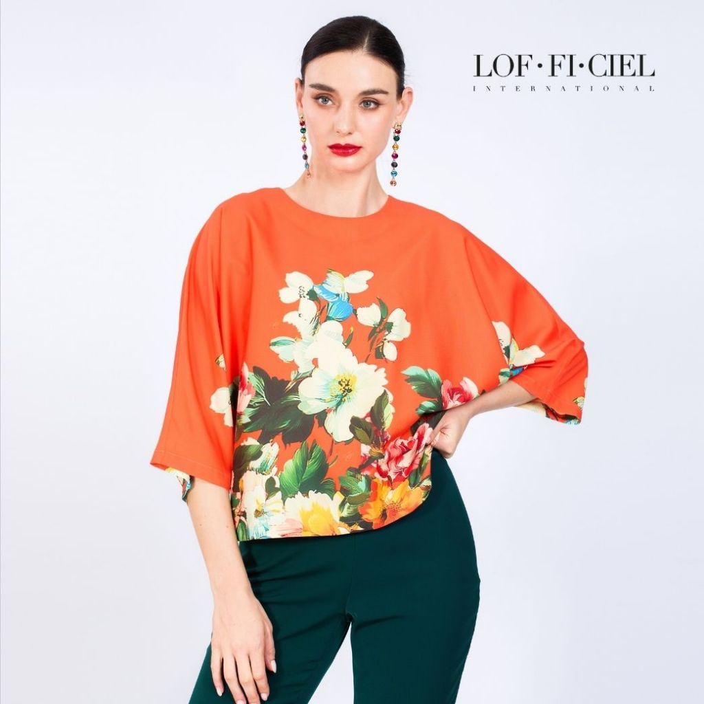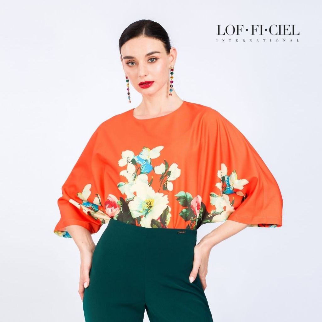 LOF-FI-CIEL เสื้อ ตรุษจีน ญ Woman's Blouse Secret Garden Blouse ทรงหลวมไม่ต่อแขน สีแดงส้ม FC6HDO