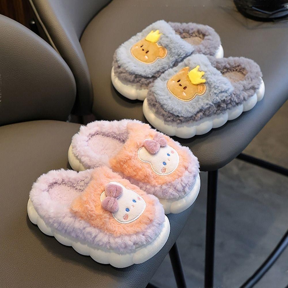ISTANU รองเท้าแตะผ้าฝ้ายสำหรับเด็ก ออกแบบการ์ตูนฟัวรี่ ลายตุ๊กตากระต่ายและหมี เหมาะสำหรับใช้ภายในบ้าน