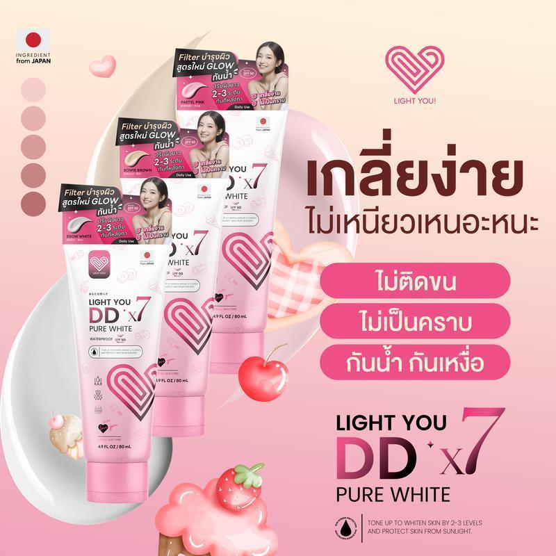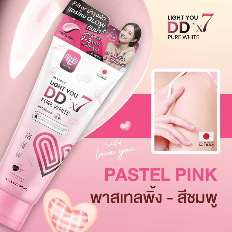 โทนอัพผิว ครีมพอกผิว ดีดีพอกผิว DDx7 สูตรใหม่ กันน้ำ กันเหงื่อ LIGHT YOU DD PURE WHITE X7 ปริมาณ 80 mL.