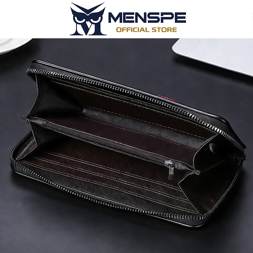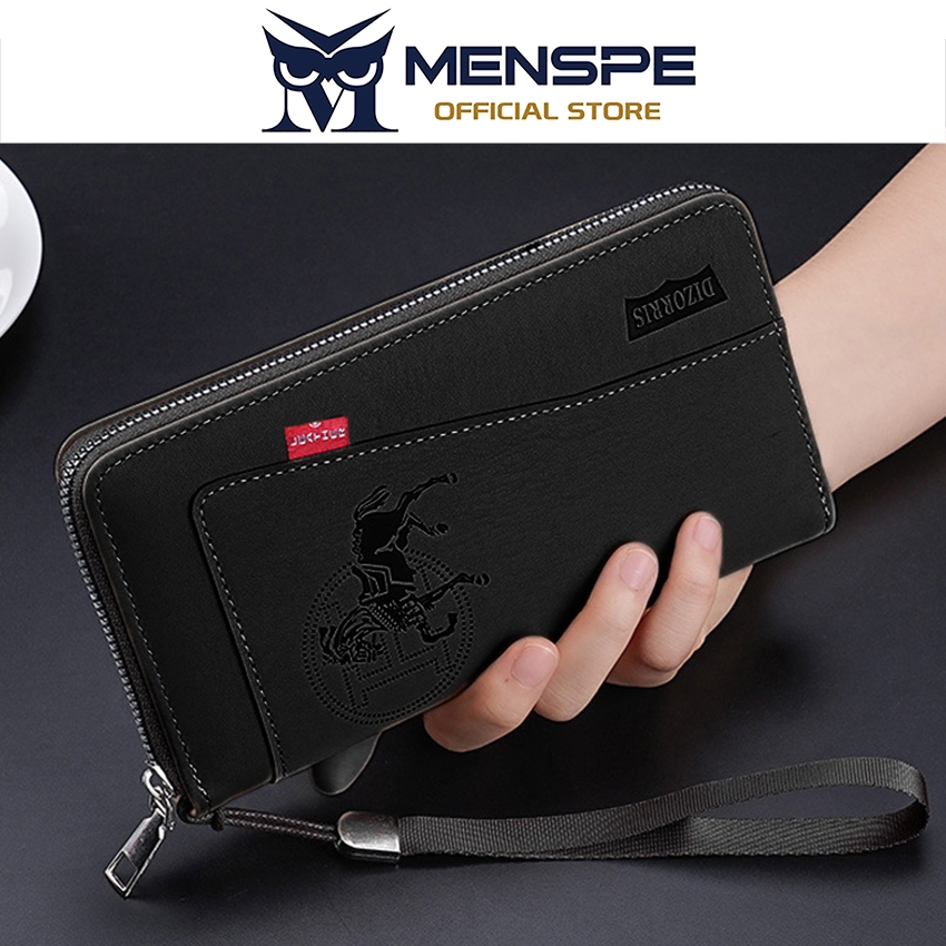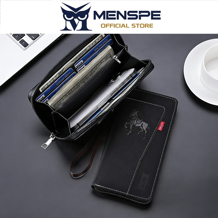 MENSPE กระเป๋าสตางค์ผู้ชายอเนกประสงค์ความจุขนาดใหญ่กระเป๋าถือซิปกระเป๋าสตางค์ Retro Soft PU กระเป๋าธุรกิจยาว