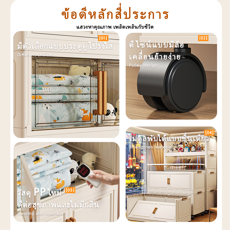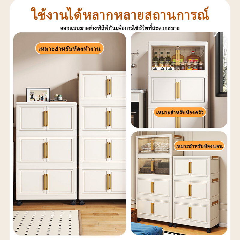 HOMENEAT ตู้เก็บของพลาสติกใส 1-6 ชั้น ตู้เก็บของแบบพับได้ มีล้อเลื่อน ติดตั้งง่าย เหมาะสำหรับแม่และเด็ก สีครีม