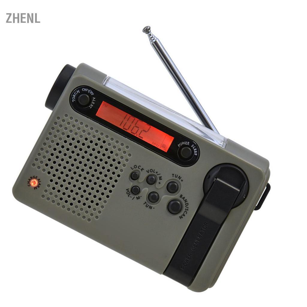 Zhenl วิทยุฉุกเฉินกลางแจ้งแบบพกพา AM FM SW Solar Powered Hand Crank พร้อมไฟฉาย LED 2000mAh แบตเตอรี่ SOS นาฬิกาปลุก