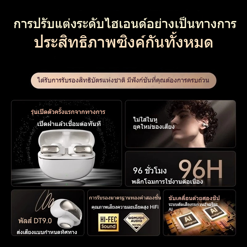หูฟังหนีบ RHYFELL C06 Bluetooth 6.0 แบต 96H เสียงพื้นที่ HIFI คุณภาพสูง ลดเสียงรบกวนอัจฉริยะ