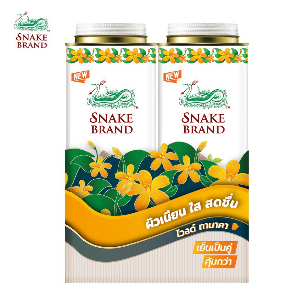 แป้งเย็นตรางู ไวลด์ ทานาคา 280 กรัม แพ็คคู่ x2 กระป๋อง Snake Brand Cooling powder Thanaka 280g.x2 แป้งเย็น ผิวเนียนใส