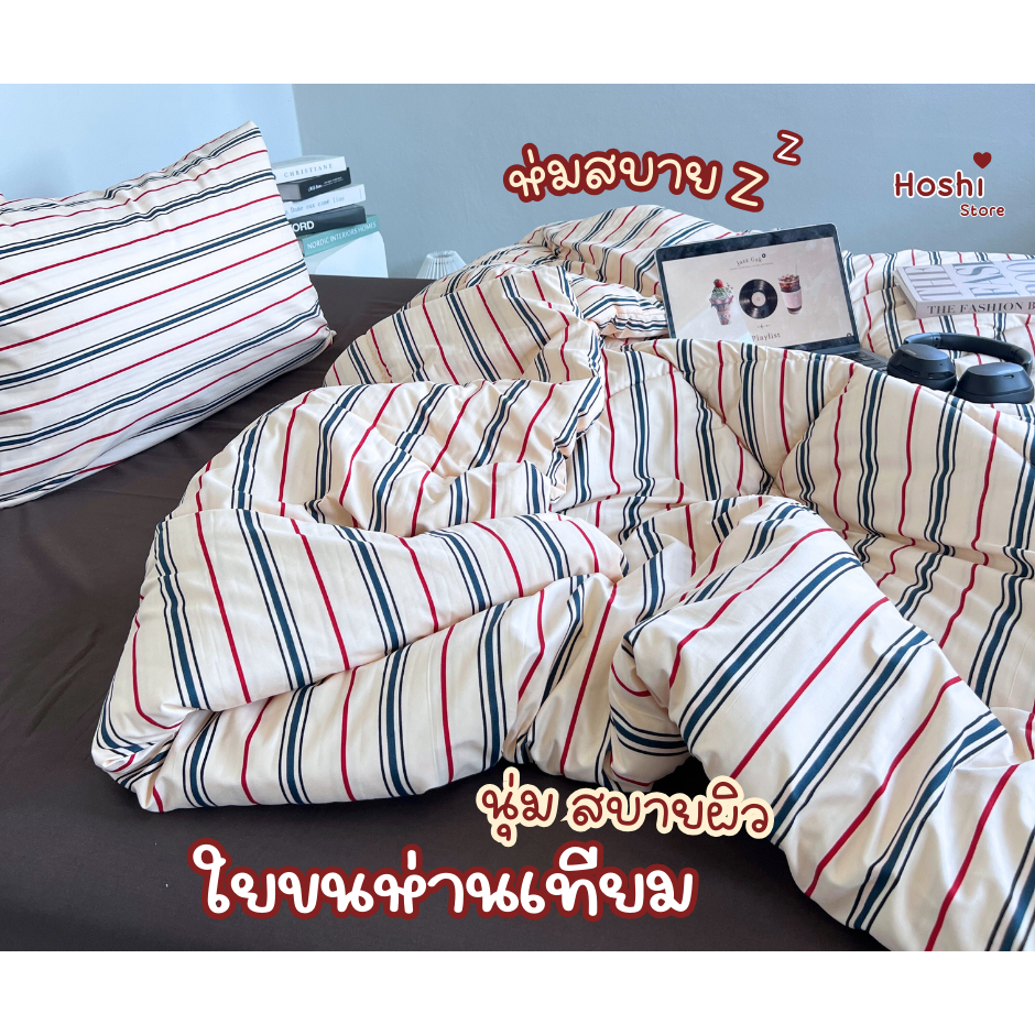 ชุดผ้าห่มนวม 6 ชิ้น (ผ้านวม6ฟุต) เนื้อผ้าคอตตอน พิมพ์ลาย ยางยืดรอบผืน ผ้าปูสูง 11 นิ้ว