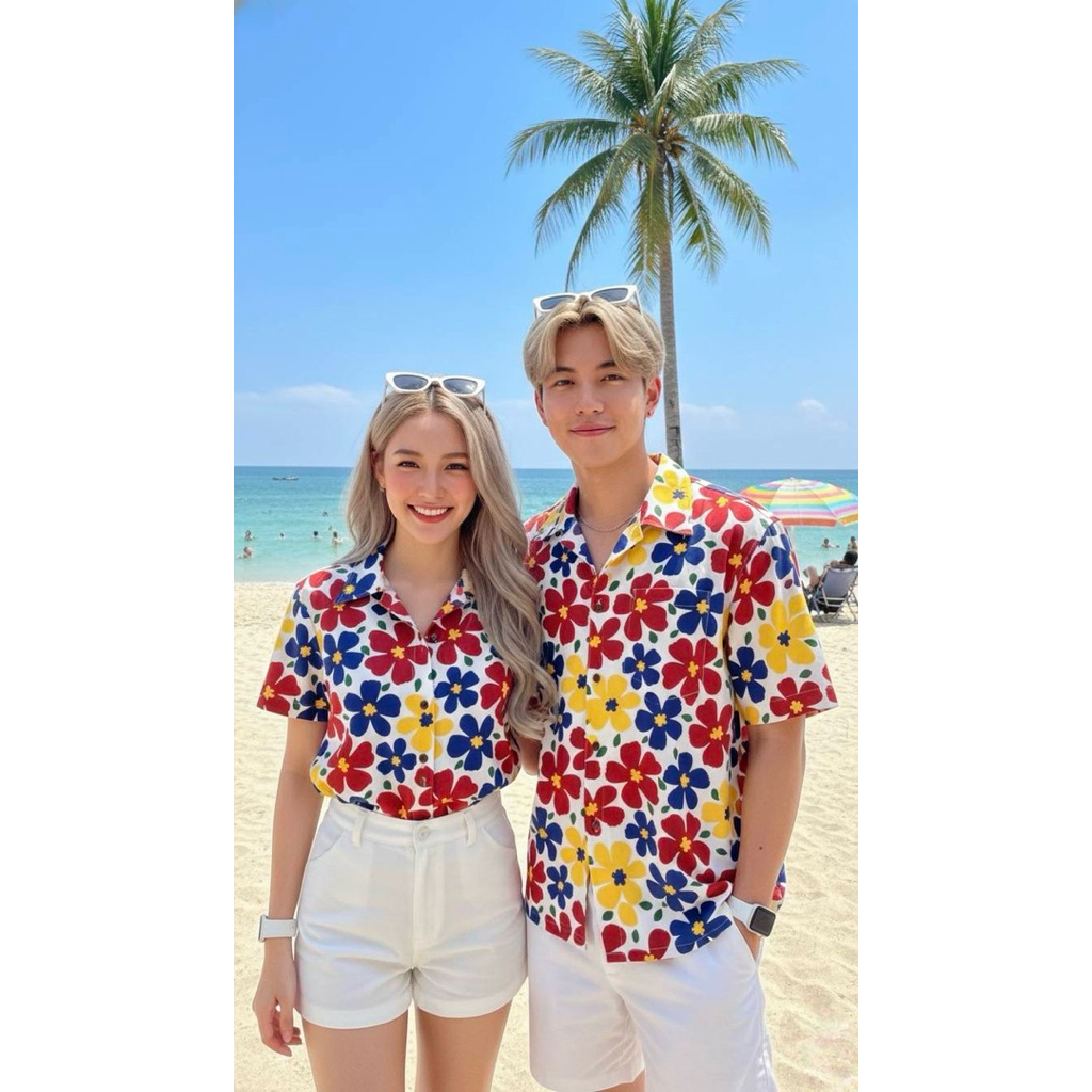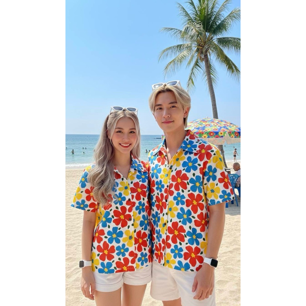 เสื้อพื้นเมืองคู่คอเชิ๊ตชาย/หญิงลายดอกหรรษา