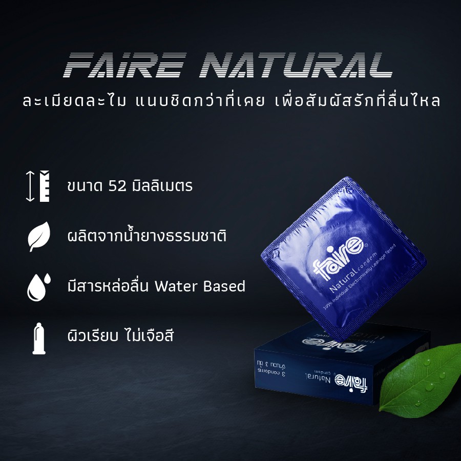 [12 กล่อง ราคาพิเศษ] แฟร์ เนเชอรัล ถุงยางอนามัย ผิวเรียบ 52 มม จำนวน 12 กล่อง รวม 36 ชิ้น