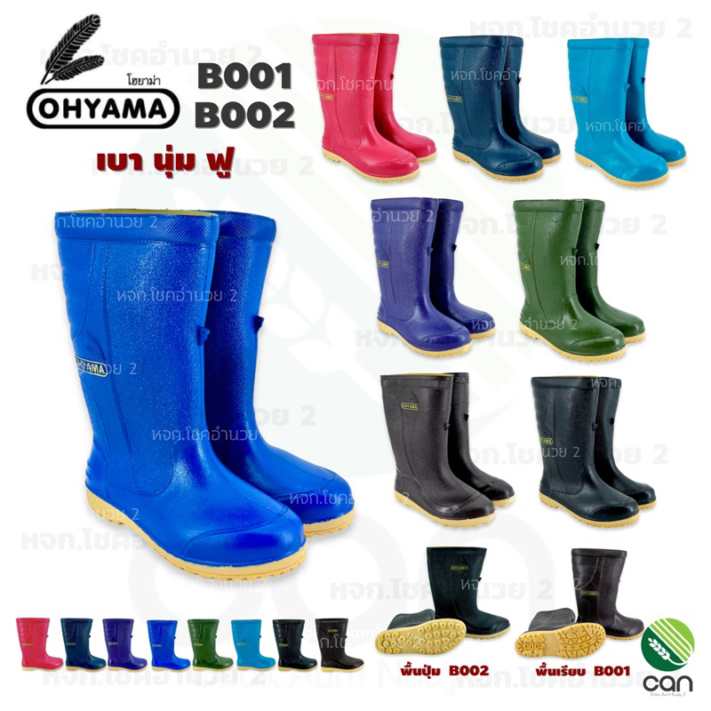 รองเท้าบูท OHYAMA สูง 12 นิ้ว พื้นปุ่ม พื้นเรียบ รุ่น B001, B002 รองเท้าบูทโฮยาม่า