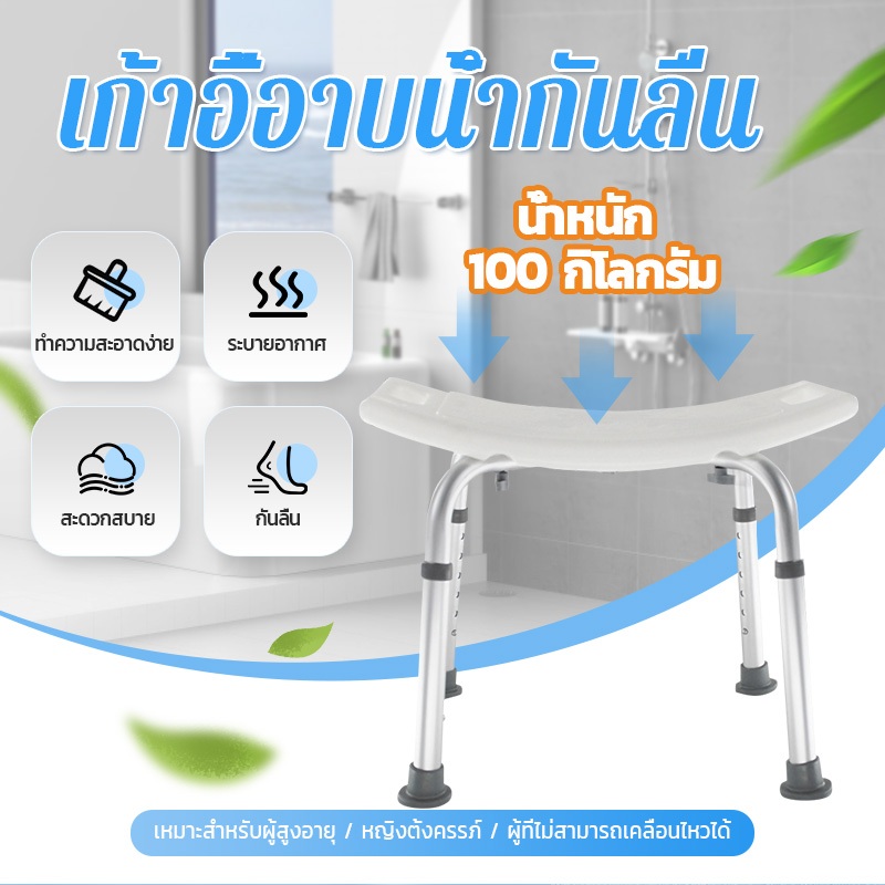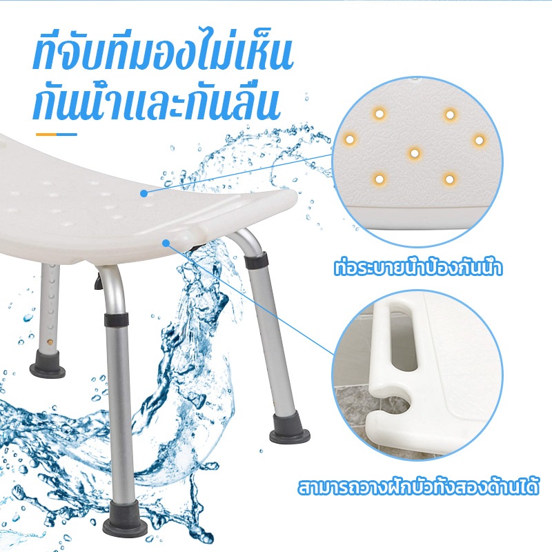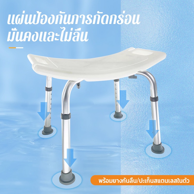 OKBB เก้าอี้นั่งอาบน้ำ เก้าอี้อาบน้ำ มีที่เสียบฝักบัว ปรับระดับได้ 38-50CM โครงอลูมิเนียม น้ำหนักเบาไม่เป็นสนิม