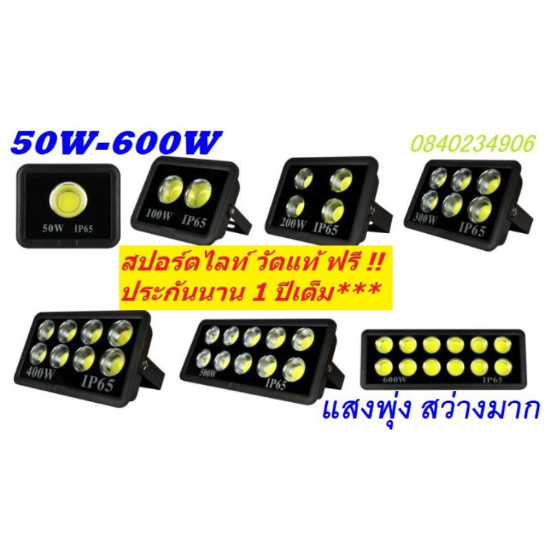 โคมไฟ Sportlight สปอร์ตไลท์ ส่องสนาม Hi Bright 100W 200W 300W 400W รุ่น COB LED เเสงพุ่งกว้าง ฟรี!ประกัน1ปีเต็ม
