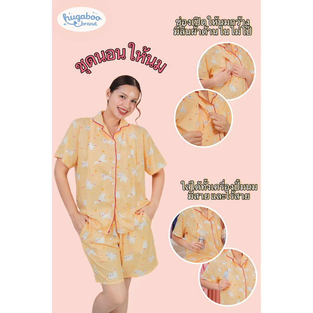 Hugaboo - ชุดนอนให้นม (fluffy cat)🌟 แขนสั้น-ขาสั้น