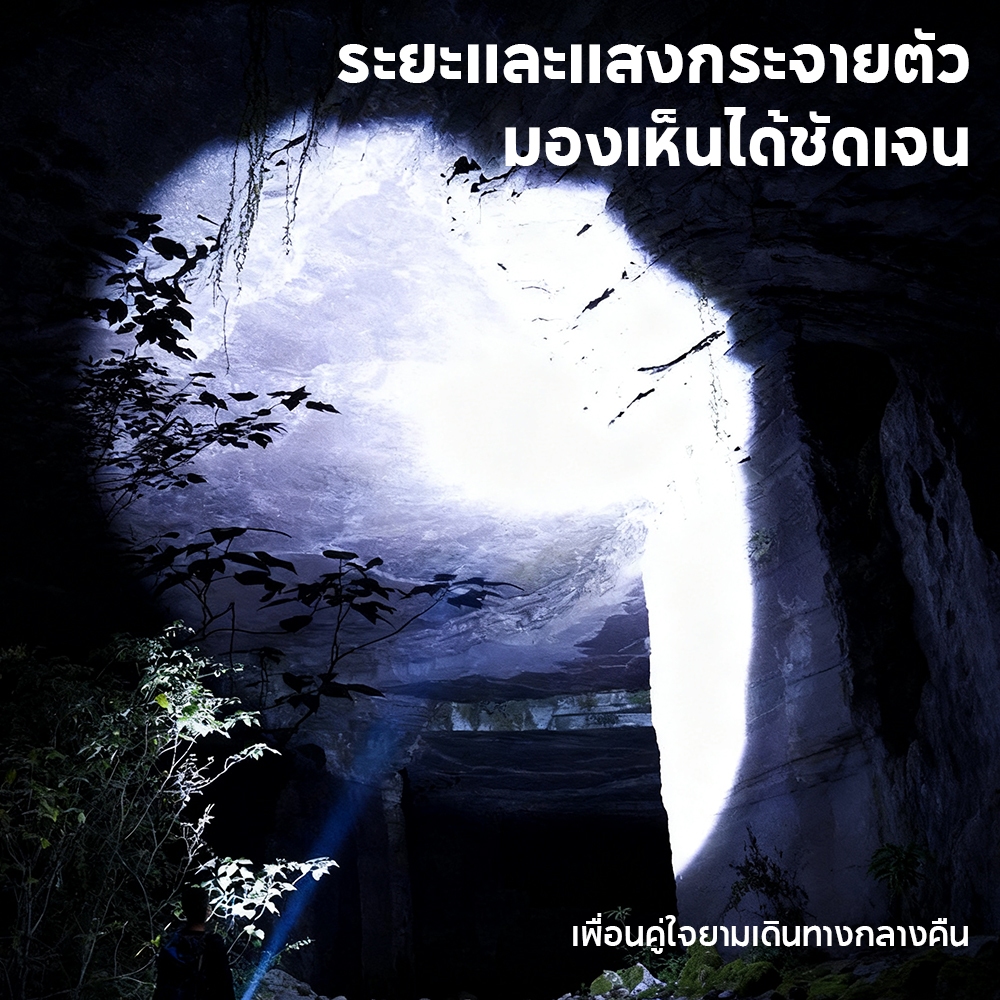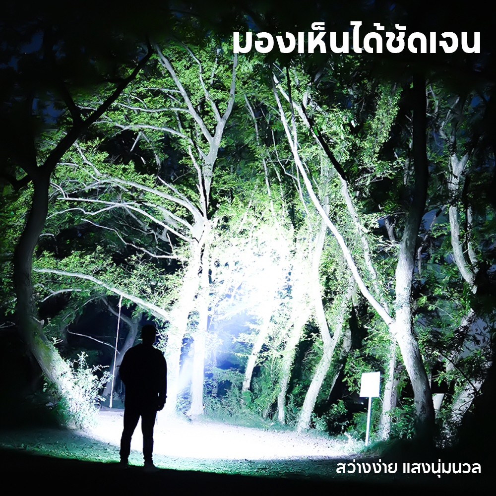 FLASHVOY ไฟฉาย 2000 ลูเมน ระยะส่อง 800 เมตร 5 โหมด ชาร์จ Type-C แสดงแบต พร้อมคลิปหนีบอลูมิเนียม ไฟฉายพกพา BF03