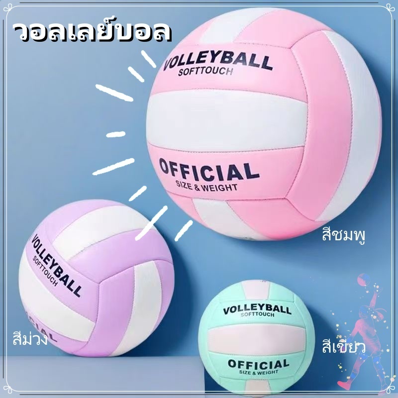 ลูกวอลเลย์บอล สีพาสเทล เบอร์5 วอลเลย์บอลการแข่งขัน สัมผัสนุ่มนวล สีชมพูและสีเขียว Volleyball