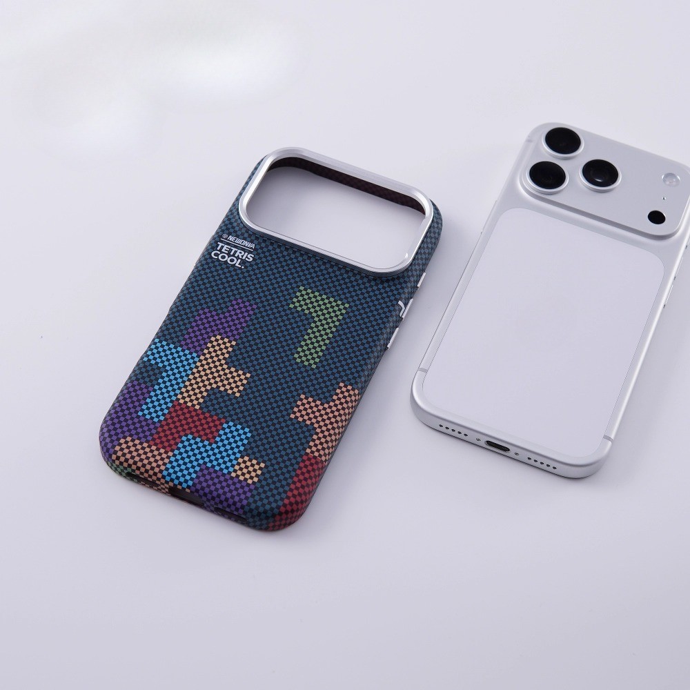 HOCE Tetris รูปแบบคาร์บอนไฟเบอร์เคสโทรศัพท์แม่เหล็กสําหรับ iPhone 17 16 15 14 Pro Max 13 กรอบโลหะกันกระแทกปกแข็ง
