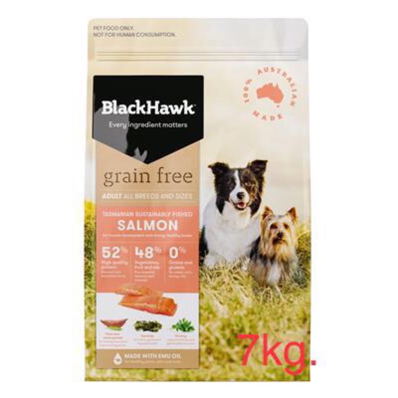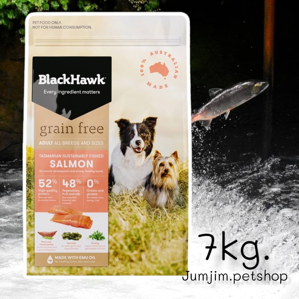 BlackHawk Grain Free Adult 7kg Salmon สูตรปลาแซลมอน อาหารสุนัขโต สำหรับสุนัข 1 ปีขึ้นไป