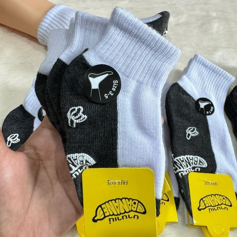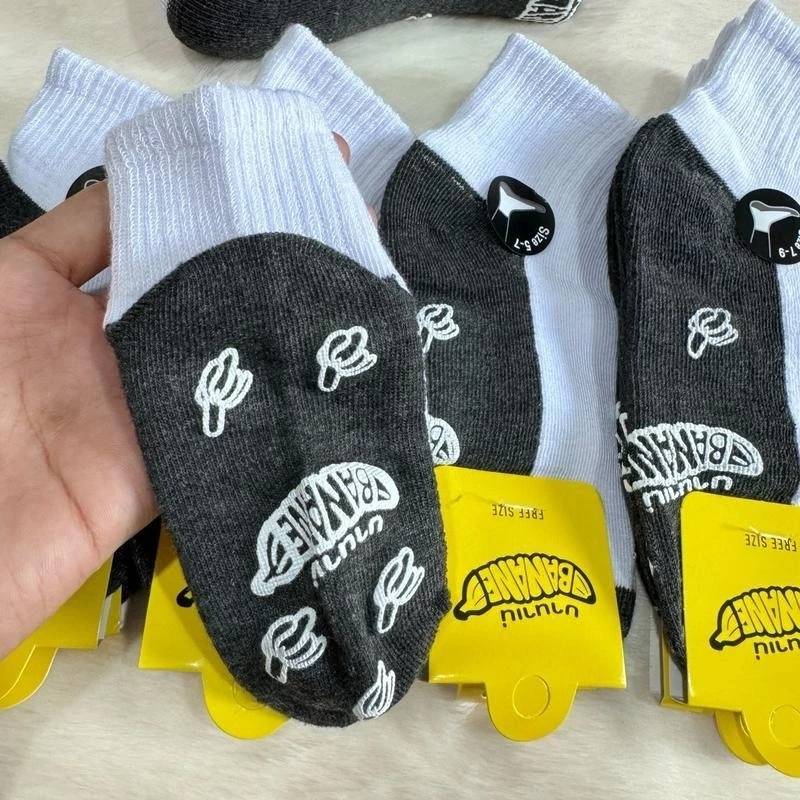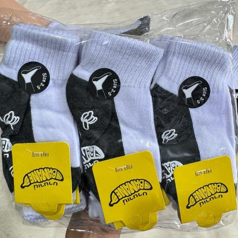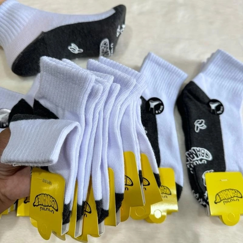 ถุงเท้านักเรียน กันลื่น 12 คู่ สีขาวพื้นเทา ใส่สบาย ไม่อับชื้น ยืดเยอะ ร่วมใช้ได้ทั้งผู้ชายและผู้หญิง