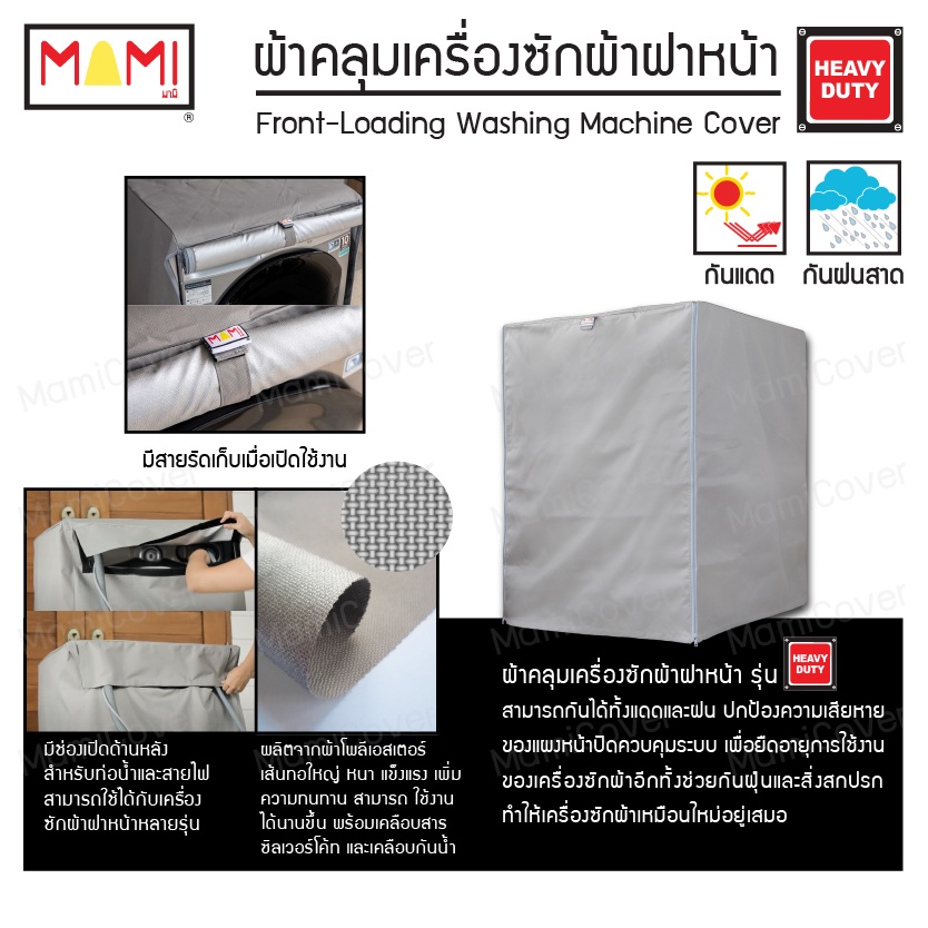 [หน้าฝนรอด แดดแรงเอาอยู่] ผ้าคลุมเครื่องซักผ้า ฝาหน้า กัน UV กันฝนสาด รุ่น Heavy Duty คุ้มค่า