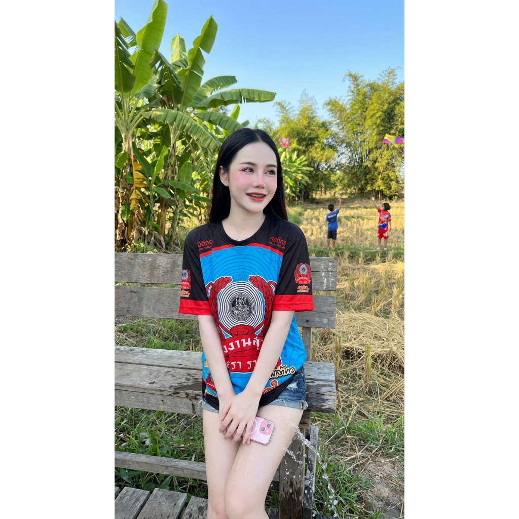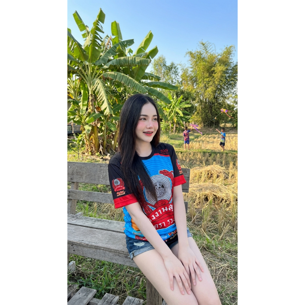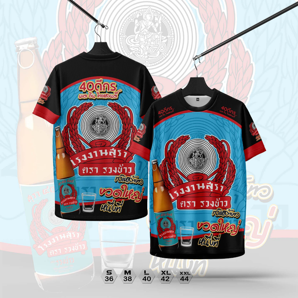 เสื้อคอกลมกีฬาลายสี่สิบดำฟ้าใส่สบายระบายอากาศผ้าไมโคร