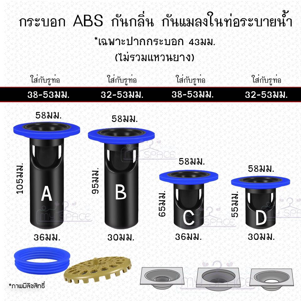 กันกลิ่นกันแมลงท่อระบายน้ำ กันตะขาบ กรองเศษผมไม่ให้ลงท่อ ✅ รุ่น ABS