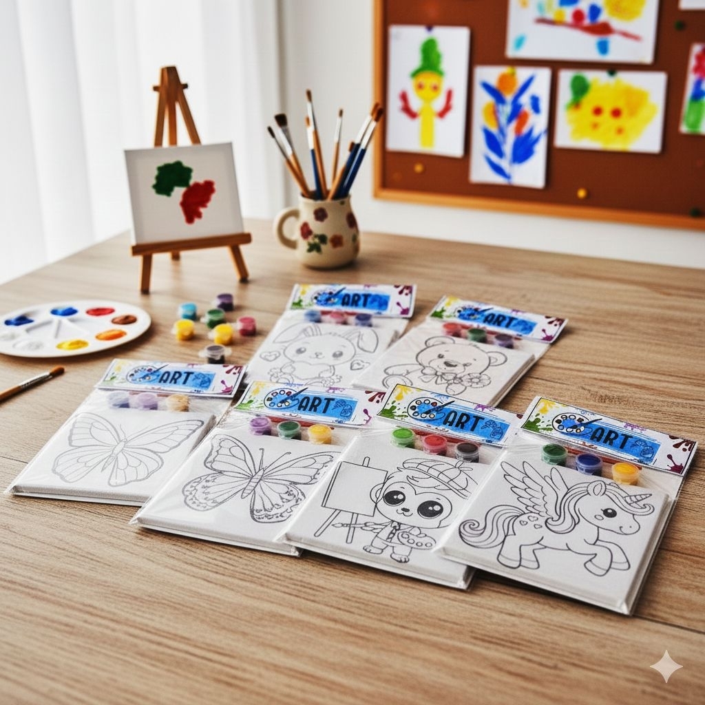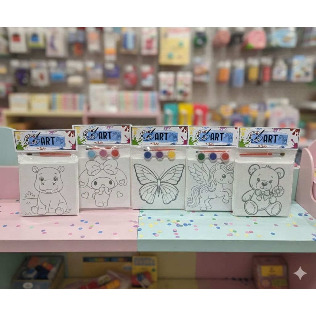 ชุดเฟรมผ้าใบแคนวาสพร้อมระบายสีขนาด13cm×13cmชุดน่ารักสำหรับเด็กๆมีสี3สี+พู่กัน