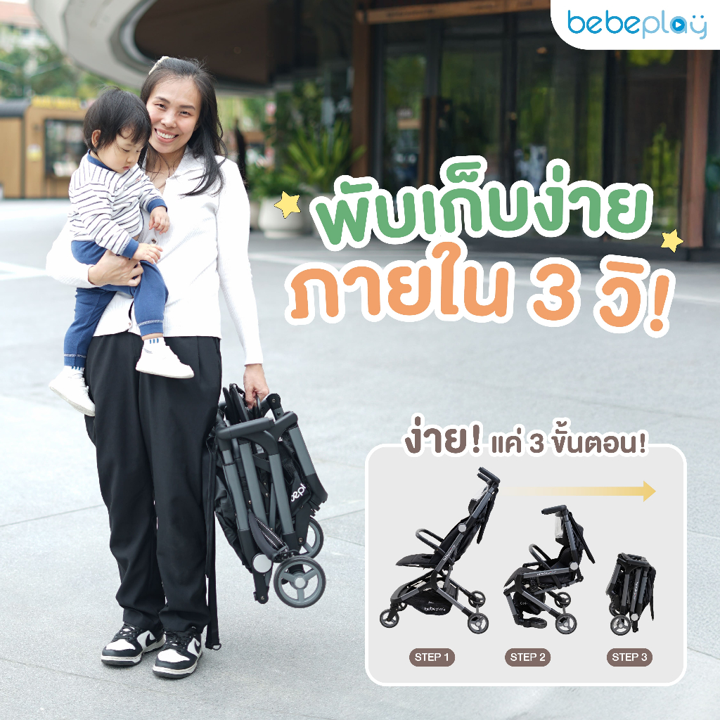 bebeplay รถเข็นเด็ก รถเข็นเด็กพกพา รถเข็นเด็กพับได้ รุ่น SNAP GO น้ำหนักเบา 4.2 Kg เด็ก 6 เดือนขึ้นไป ขึ้นเครื่องได้