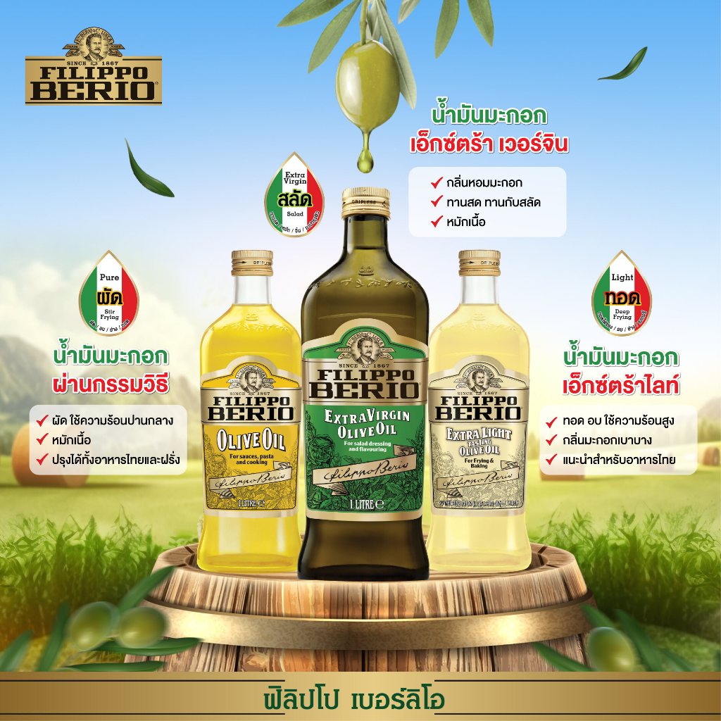 Filippo Berio น้ำมันมะกอกธรรมชาติจากอิตาลี่ Extra Virgin Olive Oil 3 ขนาด 250มล. 500มล. 1000มล.