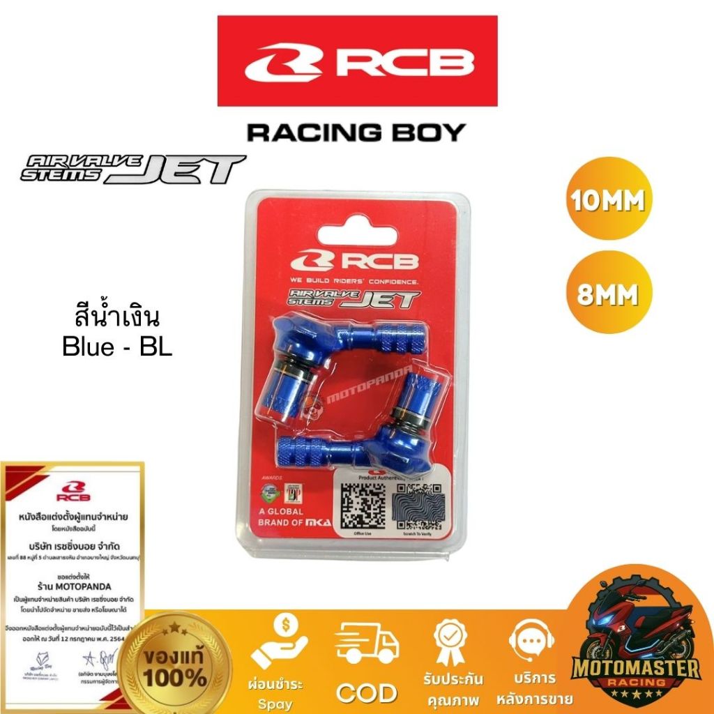 RCB จุ๊บลม Air Valve Stems JET ขนาด 10mm 8mm งาน CNC มี 5 สี Racing Boy ของแท้ 100%