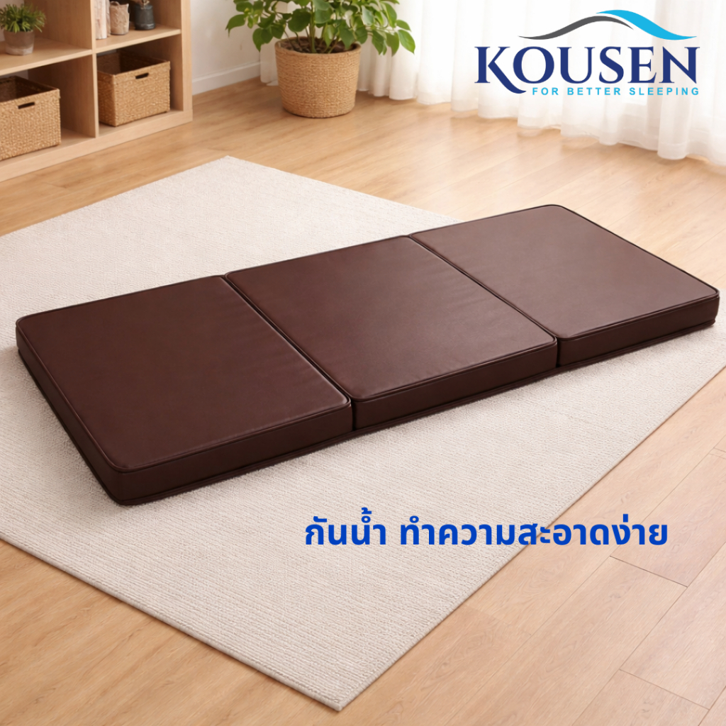 Kousen ที่นอนยางพีอี หุ้มหนัง PVC 3 พับ ขนาด 3ฟุต หนา 4 นิ้ว กันน้ำ ทำความสะอาดง่าย