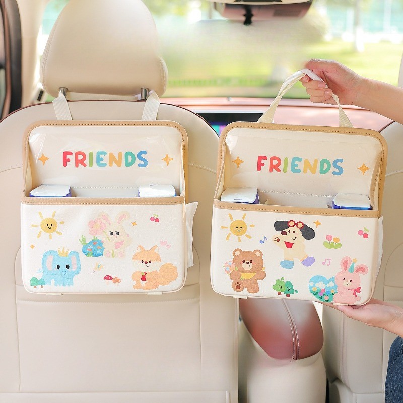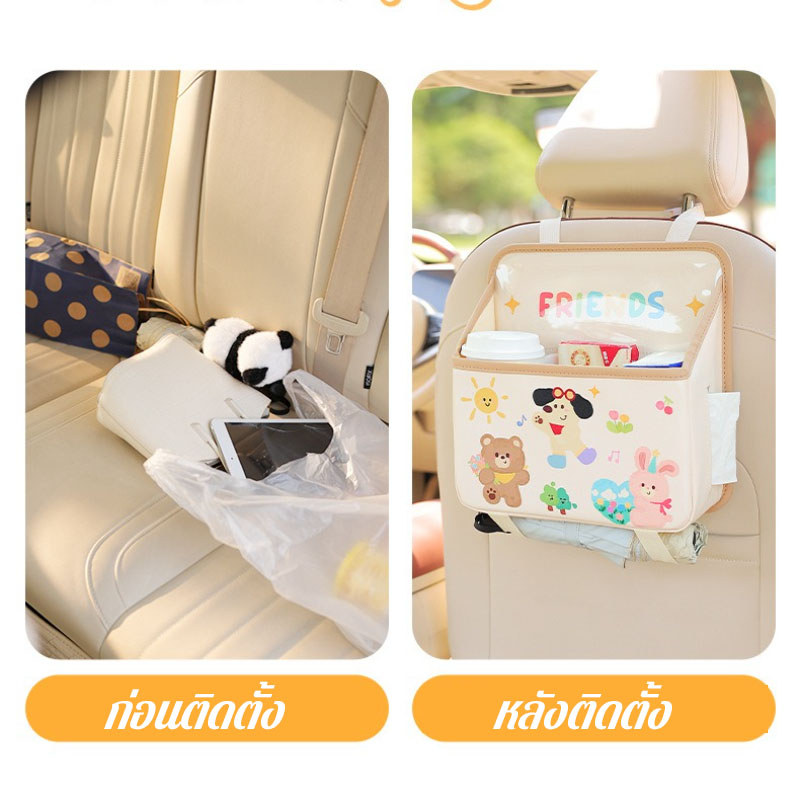 CODกระเป๋าเก็บของหลังเบาะรถยนต์ อเนกประสงค์ ลายการ์ตูน ความจุใหญ่ มีช่องทิชชู่ ถังขยะ สำหรับ ครอบครัว
