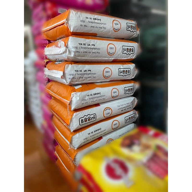 อาหารสุนัขบูม(Boom) 3สี และเม็ดสีน้ำตาล ขนาด20กก เกรดพรีเมี่ยม รสตับเม็ด3สี